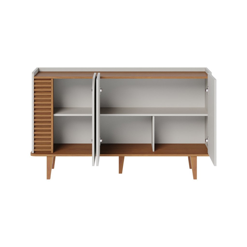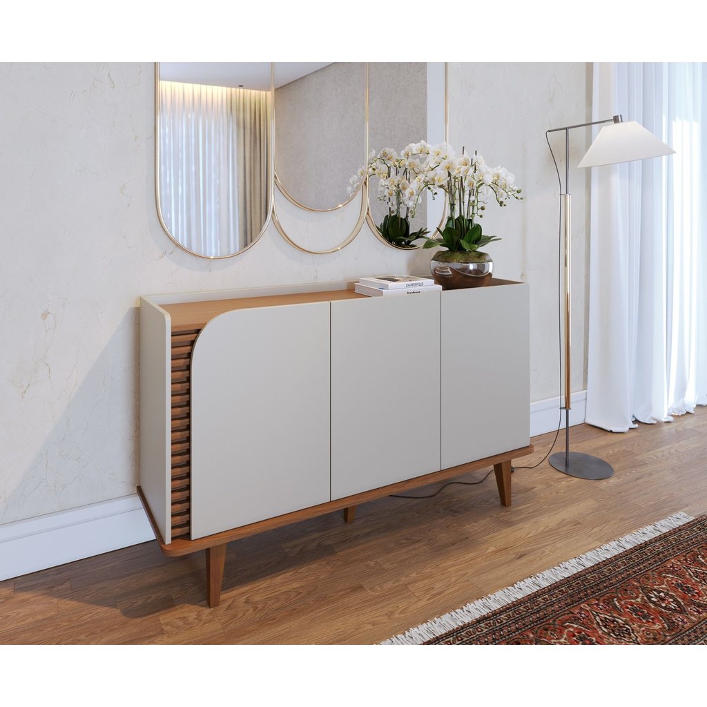 Buffet para Sala de Jantar 3 Portas Pés de Madeira Maciça Jurerê Off White com Freijó Off White Matte/Freijó