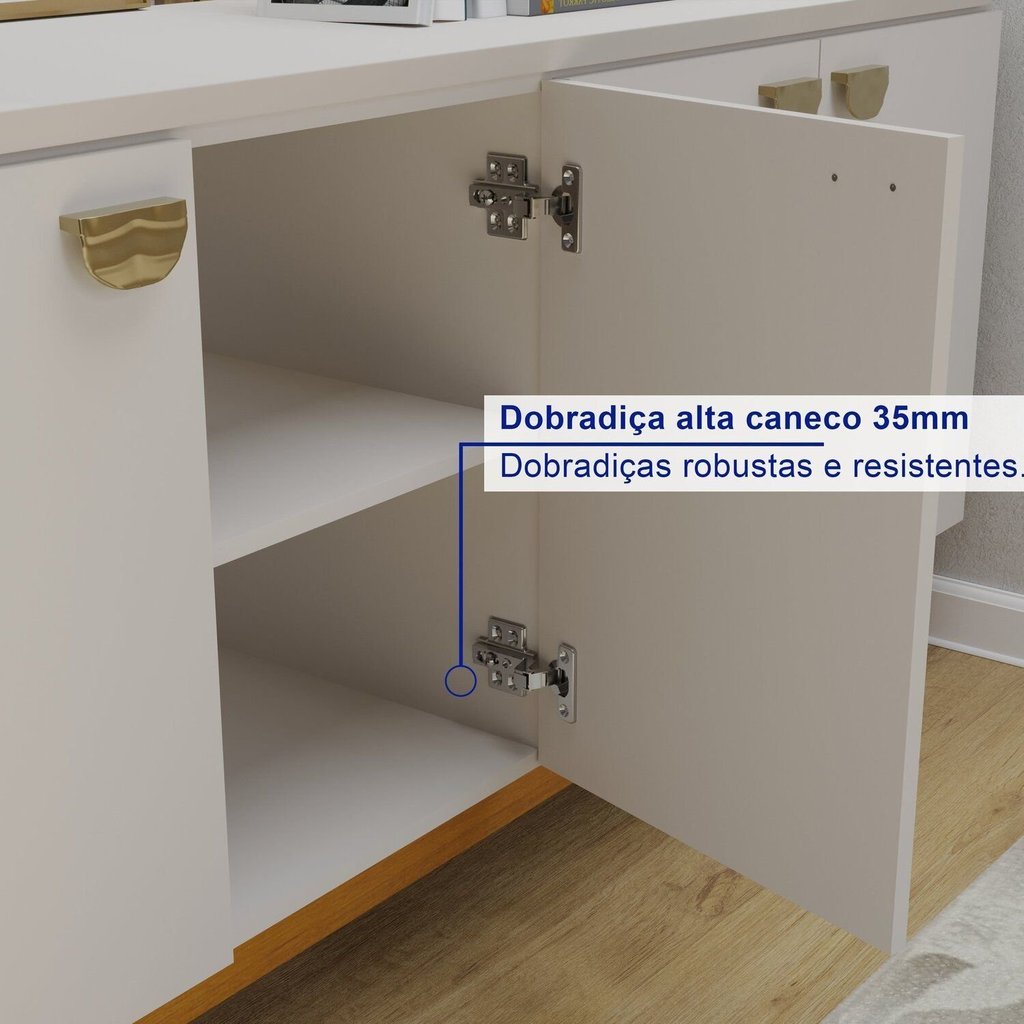 Buffet para Sala de Jantar 4 Portas com Pés de Madeira Maciça Suécia Nevaska/Cerejeira
