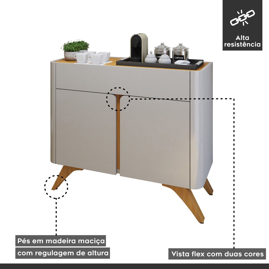 Buffet para Sala de Jantar Laqueado 100% MDF 2 Portas 92cm Pés Madeira Maciça Havana Off White/Naturalle