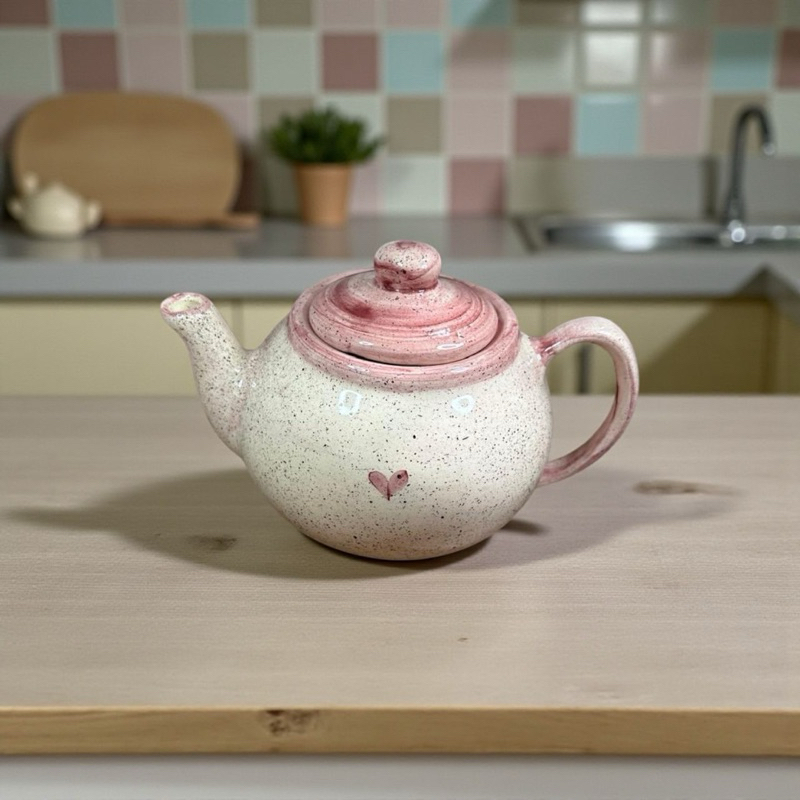 Bule de Café 600Ml Rosa Coração de Cerâmica Pintado a mão