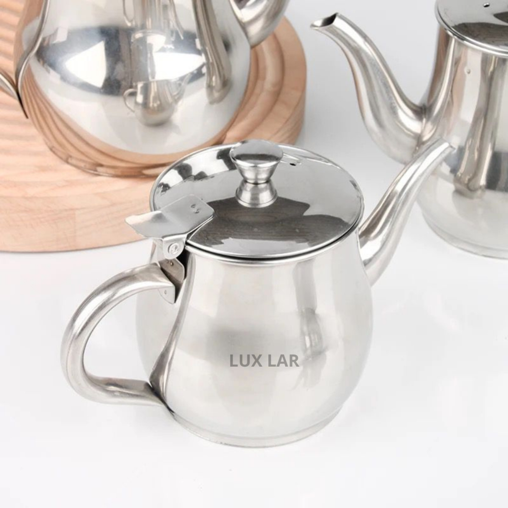 Bule de Café Inox. Este elegante e funcional bule combina a durabilidade do aço inoxidável com a eficiência térmica do alumínio polido, proporcionando-lhe uma solução de alta qualidade para o seu café, chá ou leite. ✨ Destaques do Produto: Design Durável e Elegante: Fabricado com a mais alta qualidade, o nosso bule combina a robustez do aço inoxidável com o charme clássico do alumínio polido. Seu design elegante adiciona um toque de sofisticação à sua cozinha ou mesa de café. Eficiência Térmica Aprimorada: Graças à sua construção de alumínio polido, este bule mantém suas bebidas quentes por mais tempo, garantindo que cada xícara seja tão fresca e saborosa quanto a primeira. Versatilidade Inigualável: Seja para preparar o café da manhã perfeito, uma tarde de chá reconfortante ou um momento relaxante com um copo de leite quente, nosso bule é a escolha ideal para qualquer ocasião. Fácil de Limpar e Manusear: Com um design intuitivo e materiais de alta qualidade, a limpeza deste bule é uma tarefa simples. Sua alça ergonômica e bico de precisão garantem um despejo suave e sem gotejamento. Capacidade Generosa: Disponível em uma variedade de tamanhos, desde os individuais até os maiores para atender às necessidades de todos, seja para uma xícara rápida ou uma reunião animada. ✨ Por que Escolher o Nosso Bule de Café Inox? Combinando estilo, funcionalidade e durabilidade em um único produto, nosso bule de café é a escolha definitiva para os amantes de bebidas quentes que buscam qualidade excepcional em cada xícara. Adquira o seu hoje e eleve sua experiência de preparo de bebidas a um nível totalmente novo! ESPECIFICACÕES DO PRODUTO: TAMANHO: 420 ML Ou 280 ML Material: AÇO INOX