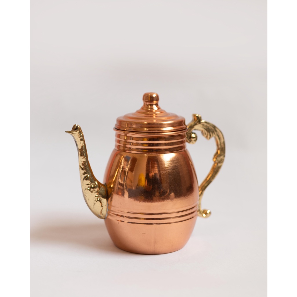 Linda peca decorativa ou para uso, feito em cobre puro com alcas e bico em bronze. O bule em cobre e ideal para deixar sua decoracao ainda mais linda e aconchegante e vai durar uma vida inteira. Atencao: Essa peca nao pode ir ao fogo, mas pode ser usada para bebidas quentes ou geladas! Vantagens: Esta e uma peca laqueada por fora e nao ira sofrer oxidacao externa, nao mancha e nem perde o brilho. Por dentro nao e laqueada para que voce possa aproveitar os beneficios do cobre. Beneficios do cobre: 1. Limpa e desintoxica o sistema, principalmente se bebida pela manha; 2. Melhora problemas de constipacao e acidez estomacal; 3. Regula o funcionamento do figado e dos rins; 4. Propriedades anti-inflamatorias estimulam o sistema imunologico e equilibram os tres doshas - Kapha, Vata e Pitta; 5. Estimula a funcao cerebral; 6. Aumenta a densidade ossea; 7. Regula o funcionamento da glandula tireoide; 8. Retarda o processo de envelhecimento; 9. Ajuda a curar feridas de forma eficiente, alem de curar dores das articulacoes em caso de artrite; 10. Melhora a saude cardiovascular; Medidas do Bule de Cobre: Altura: 14cm Diametro: 8cm Peso: 520 gramas Capacidade: 750ml CUIDADOS COM O PRODUTO : O cobre puro, quando em contato com o ar oxida (Mancha), é da sua natureza. Então aplicamos uma Impermeabilização Epóxi em Alta Temperatura que vai inibir essa oxidação e deixar sua peça sempre brilhando! Mas para proteger esta Impermeabilização e garantir que sua peça não estrague, siga as indicações: A peça não pode ter contato com nenhum produto químico nem abrasivo (Água sanitária, álcool puro etc.). Para limpar utilize apenas água, sabão neutro e esponja macia (Parte amarela). NOSSA EMPRESA: Aqui todos os produtos sao feitos artesanalmente e com muito cuidado para que as pecas durem uma vida toda. - Temos controle de qualidade e podemos garantir os melhores produtos em cobre do Brasil; - Temos todos os produtos de pronta entrega, enviamos no mesmo dia; -Emitimos Nota fiscal; - Garantia de Satisfacao! Veja a opiniao dos clientes que compraram conosco; -Temos excelencia no atendimento e contamos com uma equipe preparada para realizar o pos-venda de forma eficiente; -Mantemos contato durante a compra, inclusive, apos a compra; -GARANTIA! Voce pode devolver o produto por qualquer motivo gratuitamente no prazo de ate 30 dias apos a entrega. "A Imperio do Cobre, sem duvidas e referencia quando o assunto e Produtos em Cobre!" Estamos a disposicao!