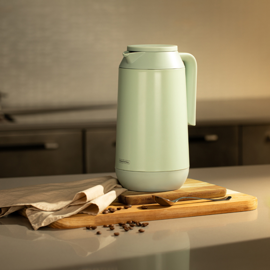 LANÇAMENTO Bule Térmico Tramontina Exata – Aço Inox, Lilás e Verde 1 Litro: Elegância e Praticidade na Sua Mesa O bule térmico Tramontina Exata em aço inox de 1 litro é a escolha perfeita para quem deseja unir sofisticação e funcionalidade em sua cozinha. Com um design moderno e acabamento impecável, ele se adapta a qualquer estilo de mesa, trazendo um toque de elegância para o seu café da manhã ou refeições especiais. Ideal para quem busca manter suas bebidas quentes ou frias por mais tempo, o bule garante praticidade e durabilidade, sendo indispensável para o seu dia a dia. Perfeito para água, café, chá, suco e muito mais! Agora, você pode escolher entre as elegantes cores inox, lilás e verde, adicionando ainda mais personalidade e estilo à sua mesa. CARACTERÍSTICAS - Capacidade de 1 litro: Ideal para servir suas bebidas favoritas sem desperdícios. - Ampola de vidro com fechamento a vácuo: Mantém a temperatura da bebida por longos períodos, seja quente ou fria. - Tampa com acionamento por botão de pressão: Facilita o uso e conserva melhor a temperatura. - Bico de precisão: Serve suas bebidas sem derramar, evitando desperdícios. - Alça ergonômica: Proporciona maior conforto e segurança no manuseio. - Material seguro para alimentos: Fabricado com aço inox de alta qualidade, livre de BPA. Este bule térmico tem um design elegante e moderno que combina com qualquer tipo de mesa, seja em um ambiente casual ou sofisticado. Disponível nas cores inox, lilás e verde, o bule permite que você escolha a tonalidade que mais combina com o seu estilo e decoração. CUIDADOS - Manuseio cuidadoso: Por conter ampola de vidro, é essencial evitar quedas e impactos. Certifique-se de que a tampa está bem-rosqueada antes de usar. - Evite agitar o produto e não o sobrecarregue, evitando enchê-lo até o topo. - Limpeza fácil: Use detergente neutro e esponja macia. Não utilize escovas abrasivas para evitar danos à ampola de vidro. - Evite bebidas que possam gerar alta pressão, como refrigerantes e gelo seco. - Não use no micro-ondas, forno, freezer ou máquina de lavar louças. DICAS DE USO Pré-aqueça ou pré-refrigere o bule com água antes de usá-lo para manter a bebida quente ou fria por mais tempo. Para um desempenho ideal, não alterne entre líquidos muito quentes e muito frios, pois isso pode danificar a ampola de vidro. PERGUNTAS FREQUENTES O bule térmico é indicado para manter bebidas quentes e frias? Sim, o bule mantém a temperatura por longos períodos, seja para café, chá, sucos ou outras bebidas quentes ou frias. * O bule pode ser lavado na máquina de lavar louças? Não, o bule não deve ser colocado na máquina de lavar louças. Lave-o apenas com detergente neutro e esponja macia para preservar a ampola de vidro. * O bule pode ser usado para armazenar bebidas gaseificadas ou gelo seco? Não, o bule não deve ser utilizado para armazenar bebidas gaseificadas ou gelo seco, pois esses líquidos podem gerar alta pressão e danificar o produto. * O produto pode ser usado para transportar leite quente ou alimentos para bebês? Recomendamos não usar o bule para armazenar leite quente ou alimentos para bebês, para evitar o crescimento de bactérias. * Como evitar vazamentos ao usar o bule térmico? Para evitar vazamentos, certifique-se de que o produto esteja sempre na posição vertical e não o encha até o topo. Além disso, verifique frequentemente o aperto das peças rosqueáveis. Garanta a sua garrafa de café TérmicaTramontina Exata Agora! Não perca a oportunidade de adicionar sofisticação, funcionalidade e um toque de cor à sua mesa com o bule térmico Tramontina Exata. Perfeito para manter suas bebidas na temperatura ideal por mais tempo, seja em momentos de descontração ou para receber seus convidados com estilo. Escolha entre as cores inox, lilás e verde e aproveite a qualidade incomparável Tramontina!