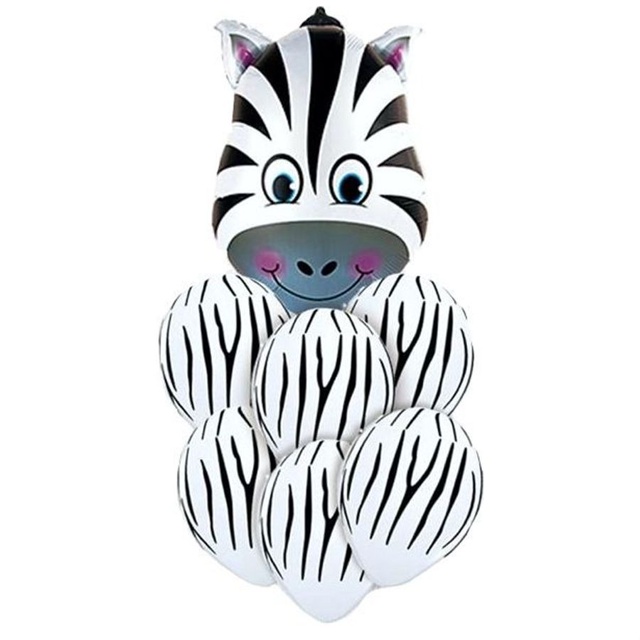 Buque de Balões Animal Print 24"- Zebra - 01 Balão Metalizado 6 Balões Látex - Partiufesta - Rizzo