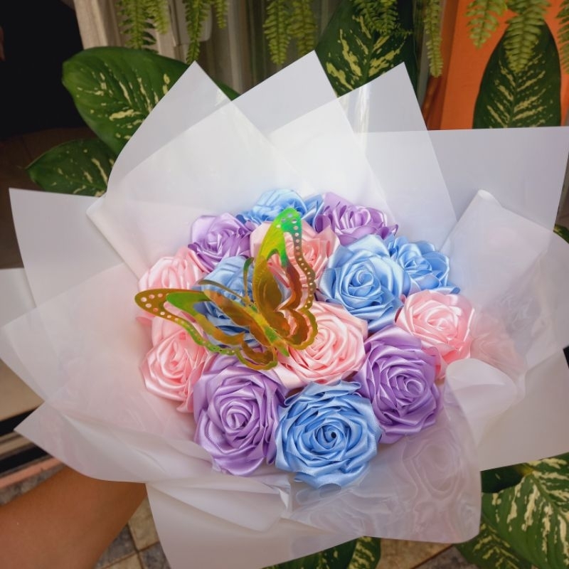 Buquê com 14 rosas de cetim Ao finalizar a compra, nos informa no chat as cores escolhidas para seu buquê, caso não seja enviado, mandaremos conforme nosso estoque. -Para garantir que nosso produto chegue até você com qualidade, utilizamos papel celofane para que não amasse muito durante o transporte. -Por favor retire o produto da caixa com cuidado, ele é embalado com plástico bolha para garantir melhor durabilidade durante o transporte.