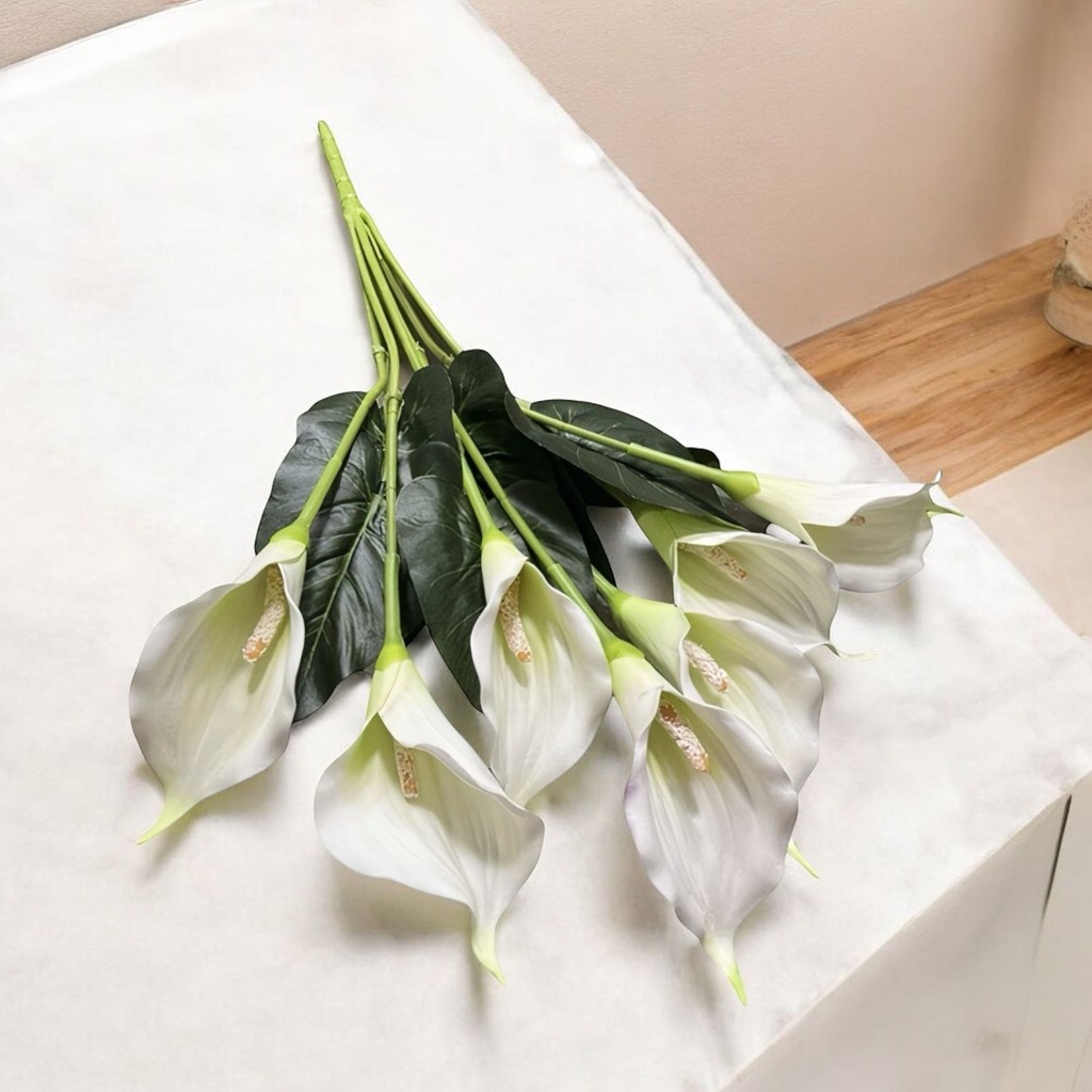 Buquê de Copo de Leite com Folhas Artificial Toque Real