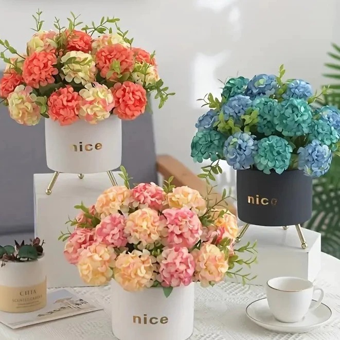 Buquê de Hortênsia Flores Artificias Ramos Cravo Decoração Casamento Arranjos Festas Casa - XX801839