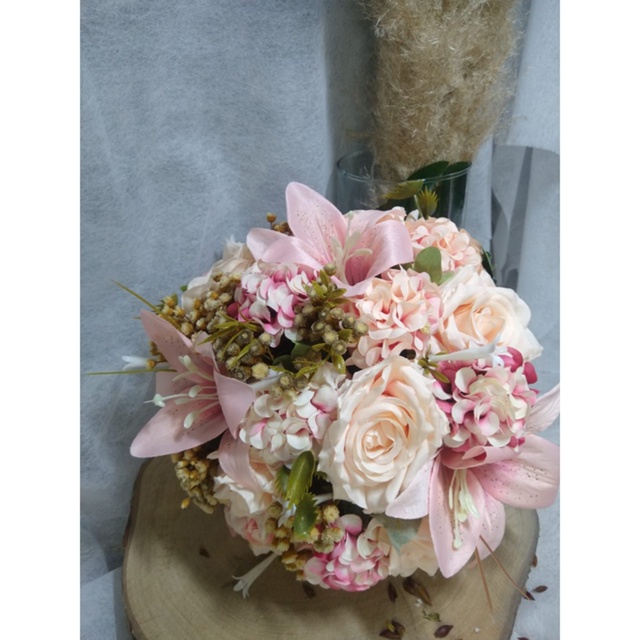 Buquê de Noiva feito flores artificiais, ótimos para você que não quer preocupação para montar o buquê de casamento Verifique a disponibilidade da cor desejada O buquê com o cabo tem 30 cm de altura e 25 cm de diâmetro aproximadamente O anúncio é somente do buquê, outros itens das fotos é apenas para ilustração. Qualquer dúvida, estamos à disposição.