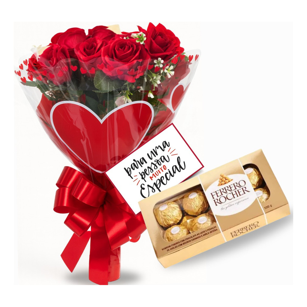 Buque De Rosas+ Ferrero + Cartão Presente Namorada Mãe Amiga