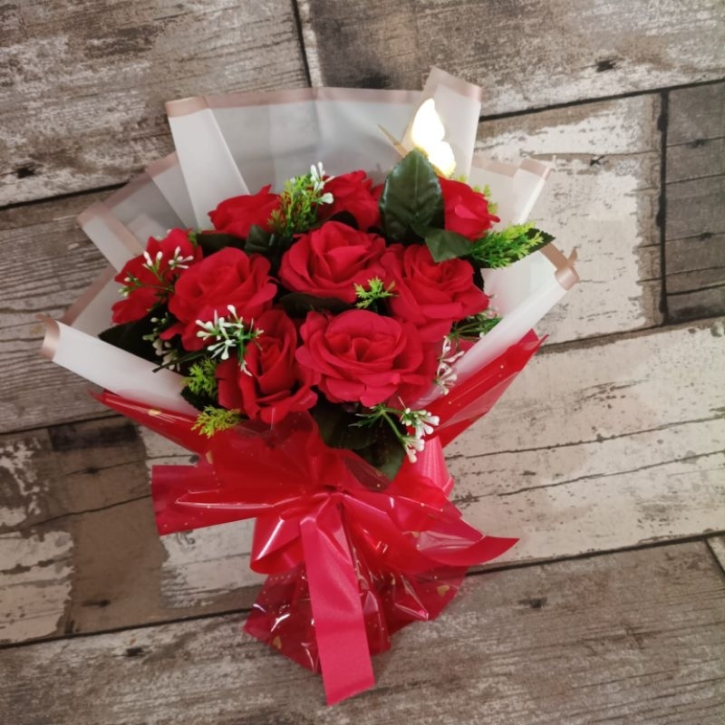 🌹 Buquê de Rosas Vermelhas Artificial – Presente Romântico, Flores Decorativas medidas do buquê 9 rosas aproximadamente 35 alt 27 largura 5 rosas 25 alt 23 largura Encante quem você ama com este lindo buquê de rosas vermelhas artificiais, perfeito para expressar amor, carinho e romantismo em qualquer ocasião especial. Com acabamento delicado e aparência realista, é um presente que emociona e dura para sempre. Ideal para Dia dos Namorados, aniversário, aniversário de namoro, casamento, noivado ou surpresa romântica, este buquê une elegância e charme, deixando qualquer momento ainda mais especial. As flores artificiais são feitas com material de qualidade, não murcham, não precisam de cuidados e mantêm sua beleza por muito mais tempo. O buquê é montado com carinho e embalado com papel decorativo e laço, pronto para presentear.