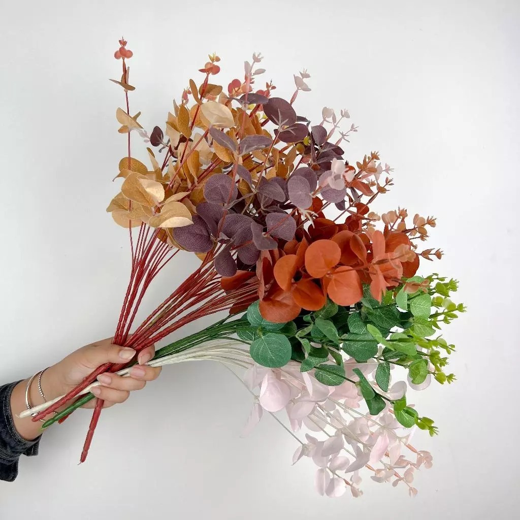 Buque Eucalipto Artificial com 16 flores folhas Decoração Flores Plantas Verdes Artificiais - A-49