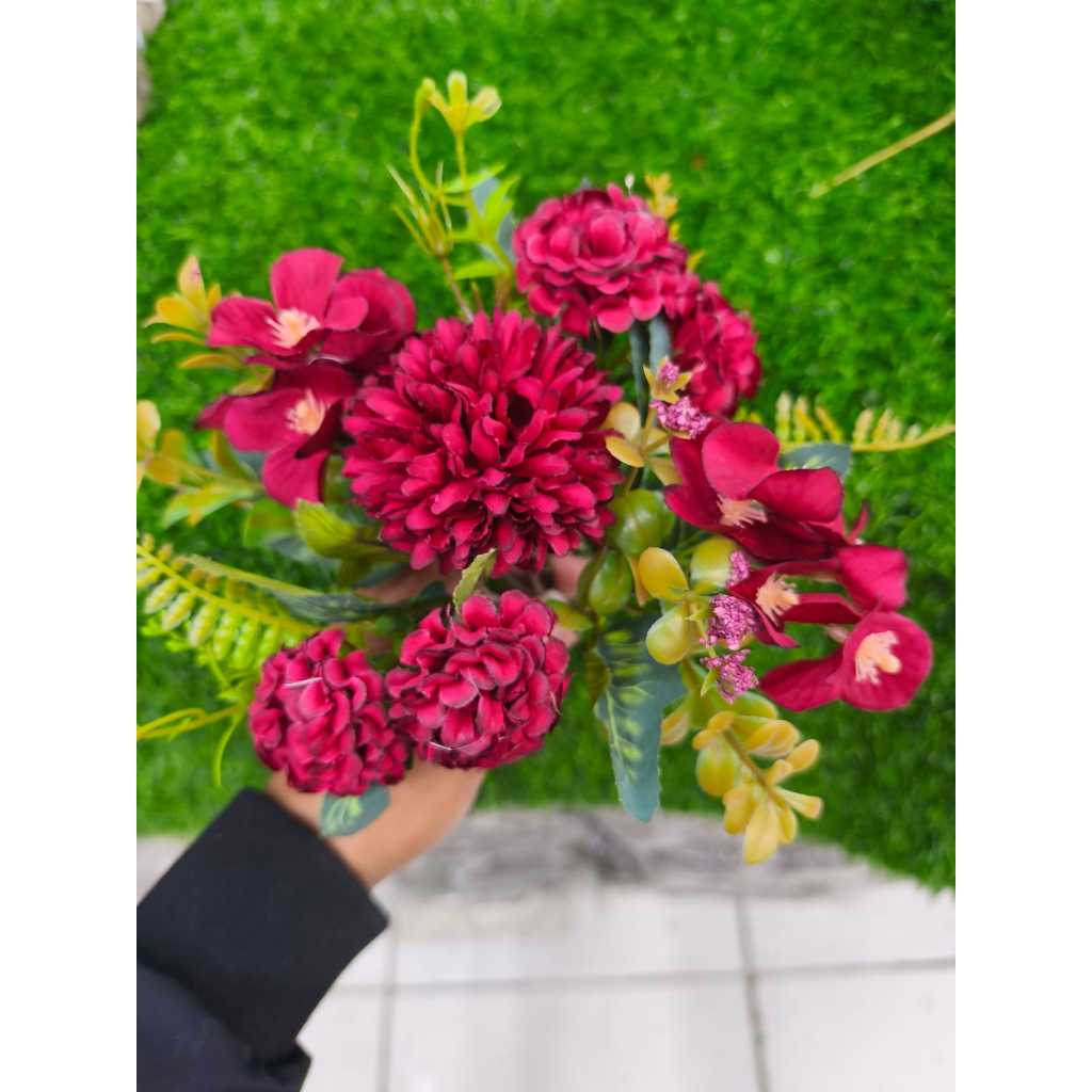 Buquê Misto Flor Artificial Crisântemo com Rosa e Crisântemo com Cravo, Buquê P/ Decoração Casamento, Arranjos, e casa