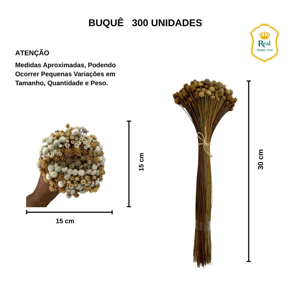 1- Sobre as Sempre Vivas Nossa flores são colhidas nos altos das serras do Vale do Jequitinhonha e Serra do Cabral, devido as condições de altitude e temperatura onde nascem conservam sua beleza por até 5 anos, são usadas em decorações de diversos ambientes e festas, bem como para convites de casamentos, artesanatos, lembrancinhas, convites, arranjos de mesa, buquê, guirlandas, cestas decorativas, vitrines, vasos entre outras diversas formas de enfeites, depois de comprar um buquê de Sempre Vivas sua visão sobre as flores sem dúvida não será mais a mesma, é uma flor natural desidratada portanto não precisa de água. 2- Principais cuidados 1° Ao receber as flores é recomendável coloca-las no sol durante 2 horas ao até que todas estiverem visualmente abertas 2° Em épocas do ano de muita chuva elas podem fechar devido a umidade 3° Colocar em ambiente seco e arejado 4° Não molhar 3- Medidas do produto Medidas do buquê: .O nosso buquê mix de sempre vivas em tons terroso é tendência em decorações de interiores como para centros de mesa, festas temáticas e decoração em geral, conta com 5 a 6 tipos de flores e botões entre eles espeta nariz, botão branco, botão rústico/botão coco, jazida e as queridinhas sempre vivas, trás um clima agradável e sofisticado para o seu lar. 4- Sobre a nossa loja Nossa família está no ramos das flores Sempre Vivas a mais de 50 anos mantendo a tradição e nosso modo de vida como apanhadores de flores que foi reconhecido com Patrimônio Cultural Imaterial pelo IEPHA-MG, somos produtores e colhemos as melhores flores que se encontra no mercado, a nossa missão com as vendas on-lines é levar a todos a beleza e encanto que essas flores trazem para a nossa vida.