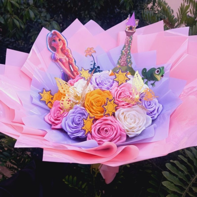 Lindo Buquê cetim da Rapunzel com 14 rosas 😍* Escolha a Personagem*😍 -Também podemos confeccionar em outro personagem ❤️❤️ mande no chat a Personagem escolhida caso deseja um diferente. *Cada personagem possui seus elementos diversificados, então não será uma regra que um tipo diferente de personagem escolhido siga a mesma montagem idêntica desse produto em especifico (Rapunzel), portanto um personagem diferente poderá ter seu toque especial na montagem seguindo suas características e elementos* Qualquer duvida nos procure no chat. -Para garantir que nosso produto chegue até você com qualidade, utilizamos papel celofane para que não amasse muito durante o transporte. -Por favor retire o produto da caixa com cuidado, ele é embalado com plástico bolha para garantir melhor durabilidade durante o transporte.