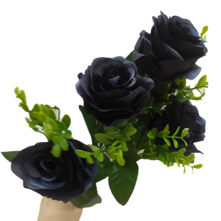 Buque de Rosas Artificiais Cada Buque contem 5 Rosas Materiais: Plástico,Tecido e Arame Altura Total:aproximada a 40cm Contem: 1 buque O Buque de Rosas Pretas é ideal para complementar sua decoração, transmitindo um ar mais calmo, remetendo a paz e alegria com seu tom de verde em suas pétalas delicadas. Formato da Flor:Buquê Tipo de Flor:Artificial