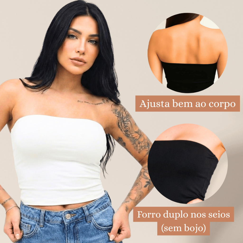 | Busa Feminina EstilosaTop Tube Tomara Que Caia Feminino Suplex Prem... este produto | R$ 23,13 | 46% | 4.9/5 | 6 |