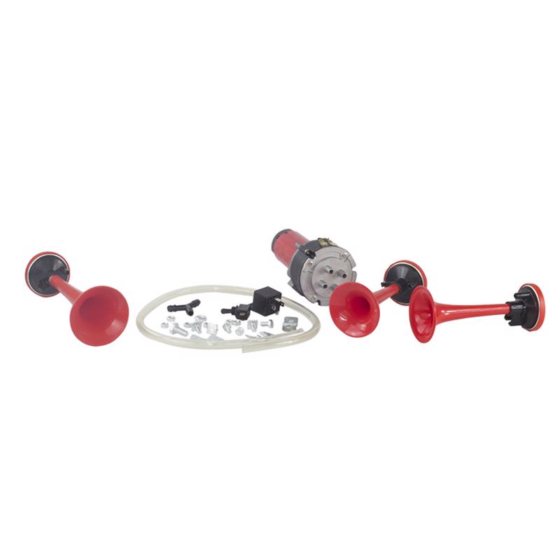Buzina Ar Caminhão 3 Cornetas Vermelha Com Compressor 12v