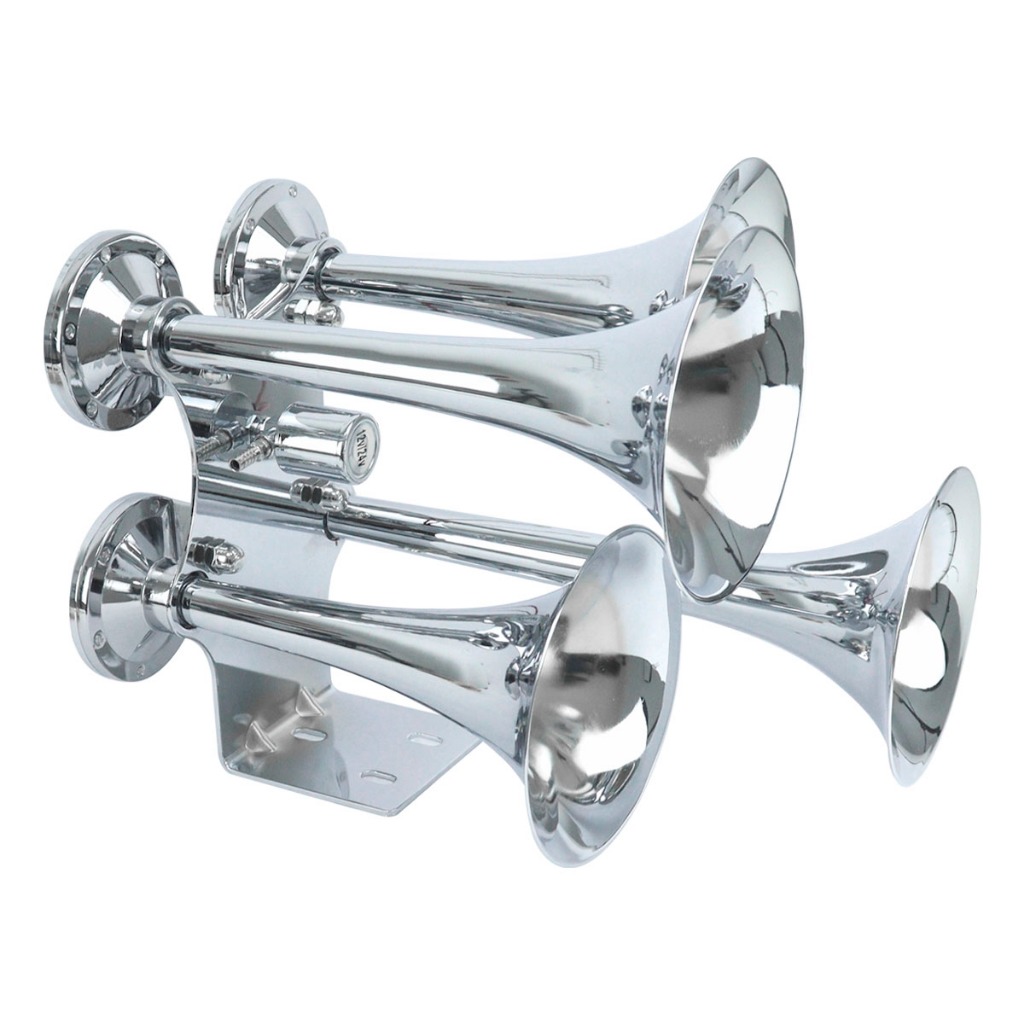 Buzina Ar Caminhão Som de Trem Navio 4 Cornetas Marítima Bivolt 12V 24V Mais Potente Do Mercado