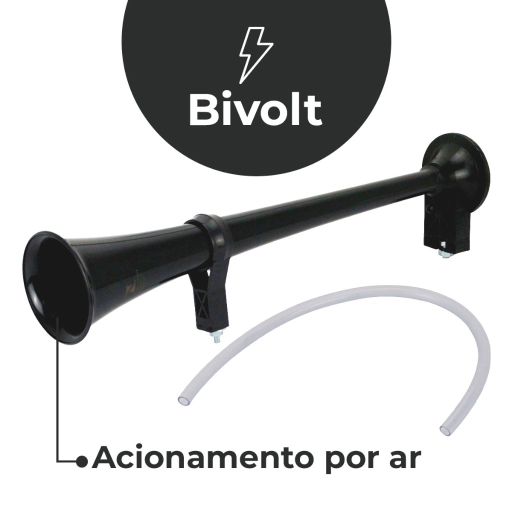 Buzina Ar Corneta Preta Marítima Automotiva Sem Compressor 45cm Caminhão Carro Som Potente