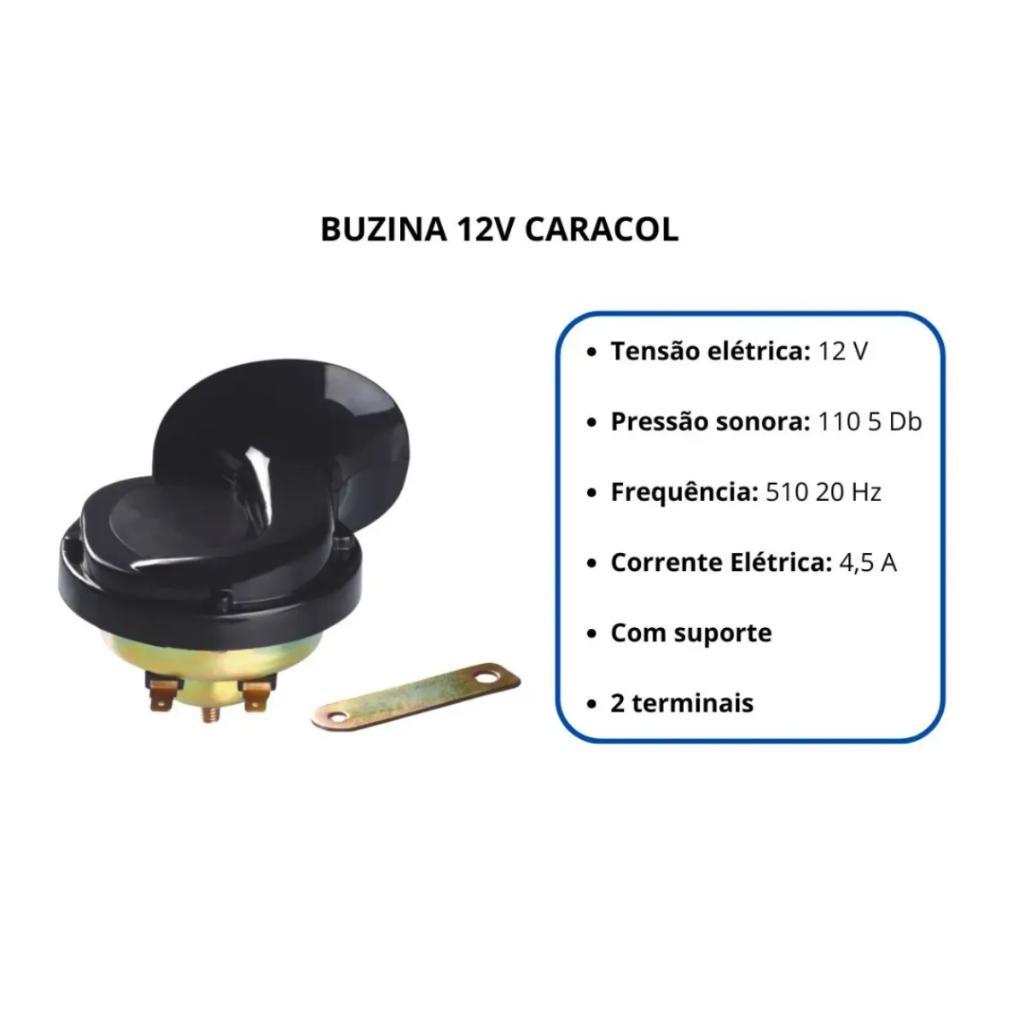 A buzina caracol da Gauss é um dos componentes de sinalização sonora mais procurados no mercado de reposição, justamente por equilibrar durabilidade, potência e facilidade de instalação . Diferente das buzinas tipo "prato" (retas), a buzina caracol possui uma câmara de ressonância em espiral. Acústica: Esse formato permite que a onda sonora percorra um caminho mais longo antes de sair, o que resulta em um som mais grave, encorpado e harmonioso, semelhante ao de veículos de luxo. Material: Geralmente fabricada em polímero de alta resistência com suporte metálico tratado contra corrosão. Proteção: O bocal é projetado para dificultar a entrada de água e detritos, aumentando a vida útil do diafragma interno. Embora existam variações, a linha universal da Gauss costuma seguir este padrão: Tensão: 12V (compatível com a grande maioria dos carros e motos). Corrente: Aproximadamente 4A a 5A. Frequência: Geralmente em torno de 410Hz (Grave) ou 510Hz (Agudo). No kit duplo, as duas frequências se somam para criar o timbre clássico. Nível de Som: Entre 105dB e 118dB, garantindo que o sinal seja ouvido mesmo em ambientes urbanos barulhentos. O termo "Universal" não é exagero. A Gauss projeta essas buzinas para serem substituídas sem dor de cabeça: Conector Universal: Possui terminais do tipo "faston" (duas lâminas), que se conectam facilmente à fiação original. Suporte Flexível: Acompanha uma haste metálica perfurada que permite fixá-la em praticamente qualquer ponto do cofre do motor ou atrás da grade frontal. Compactibilidade: Por ser compacta, ela cabe em espaços reduzidos onde buzinas maiores não entrariam, sendo uma excelente opção para motos de alta cilindrada ou carros compactos. N-33374
