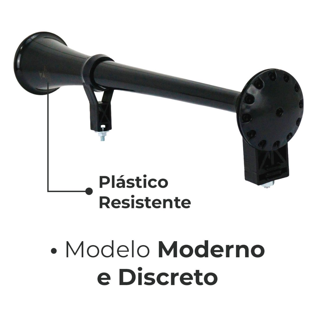 Buzina Marítima Bivolt Preta 45cm Para Caminhão Carro Som Super Potente Eletropneumática
