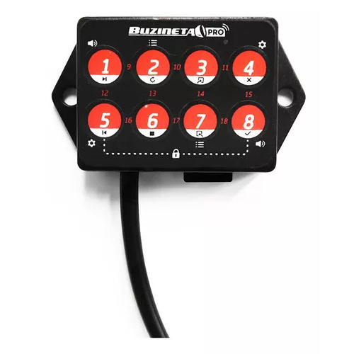 Buzineta Pro com fio (50718) ___________________________________________________________ A Buzineta é uma buzina digital personalizável com cartão de memória e função alarme com sensor de movimento. Com seus sons criativos e inusitados, tornam seu trajeto único, com uma pitada de humor. Pode ser instalada em qualquer veículo com bateria 12V. Possui mais de 300 sons disponíveis já de fábrica, sendo possível ainda converter seus próprios sons, qualquer que seja o formato, com o software Buzineta Editor incluso. Possui acionamento por controle com fio de 8 teclas que combinadas permitem utilizar 18 sons diferentes. Escolha e modifique os sons das teclas na própria Buzineta através do modo de programação. *O Software Buzineta Editor foi desenvolvido para sistemas Windows. Acompanha: - 1 Buzineta Pro com 8 Teclas (18 comandos) versão com fio - 1 Corneta - 1 Cartão de memória com mais de 300 sons (relação abaixo) - 1 Software Buzineta Editor dentro do cartão de memória - Manual em português Especificações: - Pressão sonora : 115dB máx. - Potência: 15Watts; - Sons na memória: >300 - Comprimento do cabo de instalação: 1m - Teclas: 8 - Sons prontos para acionar: 18 - Sensor da Função Alarme: Sensor de Vibração - Listas para troca instantânea de sons: 8 (editáveis) - Níveis de volume: 8 - Medidas da Buzineta (Controle com botões): 59 X 33 X 13mm - Medidas da Corneta: 106 X 106 x 90mm - Tensão: 11 a 13,8V; - Corrente: 1,7A * A instalação deve ser feita por profissional certificado. * Instale a corneta de forma que a saída de som fique apontada para fora do veículo. Obs.: É possível obter uma maior pressão sonora quando utilizado drivers de som automotivo, testes efetuados com JBL D200 apresentaram desempenho superior a 119dB. Garantia - 3 meses *Obs.: Monitor (TV) da foto principal não incluso *A Buzineta foi desenvolvida para uso recreativo e fora do trânsito. Verifique legislação de trânsito vigente. --------------------------------- >> ATENÇÃO: Todos os nossos produtos possuem garantia. Despachamos todas mercadorias em menos de 24 horas úteis A Sixled iniciou as atividades em 2016 com o propósito de oferecer produtos com ótimo preço e qualidade. Com tecnologia desenvolvida no Brasil, possui um vasto catálogo de produtos. Oferece várias soluções para atendimento desde painéis de senhas, relógios, cronômetros digitais à painéis letreiros de LED, perfeitos para todo tipo de atividade.