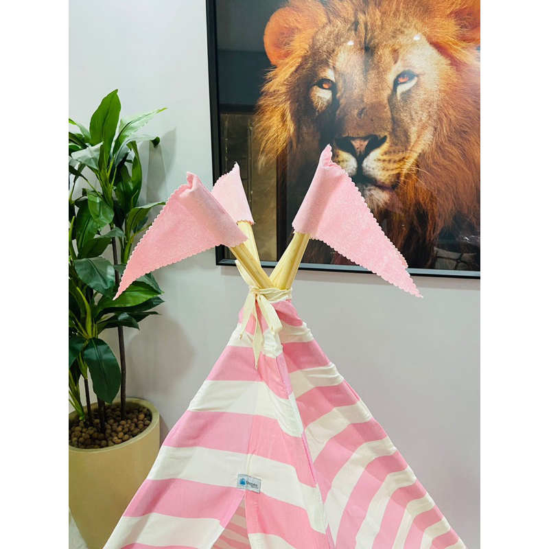 Cabana infantil festa do pijama 90x90x130 rosa listrada menina quarto criança