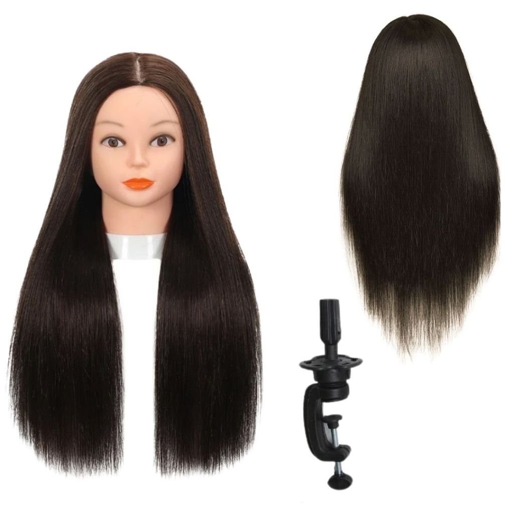 Cabeça De Treino Cabelo Orgânico P/cortes Penteados + Suporte De Brind