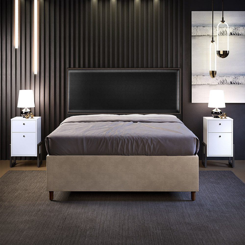 Cabeceira Box Queen Com Tachas 160 cm Vicenza L02 Facto Preto Metalizado - Lyam Decor