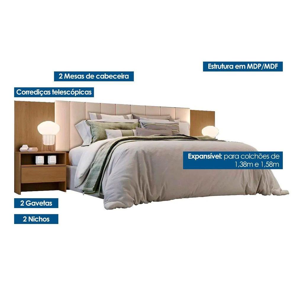 Cabeceira Cama Box Madeirado Cor Cumaru Casal Everest Plus 2 Mesas c/ 2 Gavetas Cumaru - Novo Horizonte