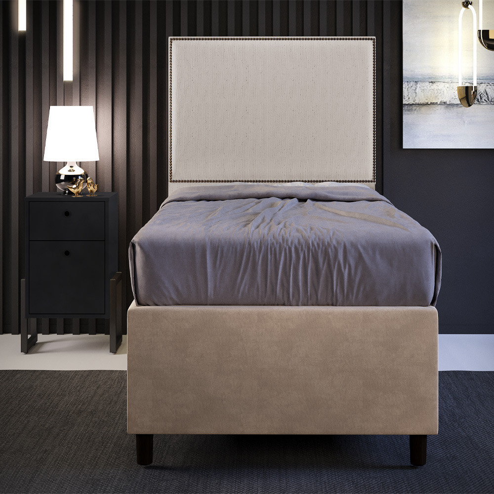 Cabeceira Cama Box Solteiro Com Tachas 100 cm Vicenza L02 Linho Bege - Lyam Decor