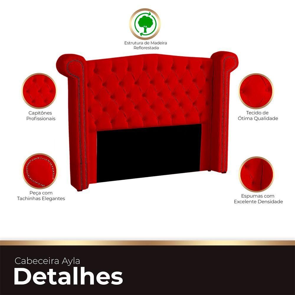 Cabeceira Casal King Size Estofada Para Cama Box Ayla Veludo Cor Vermelho