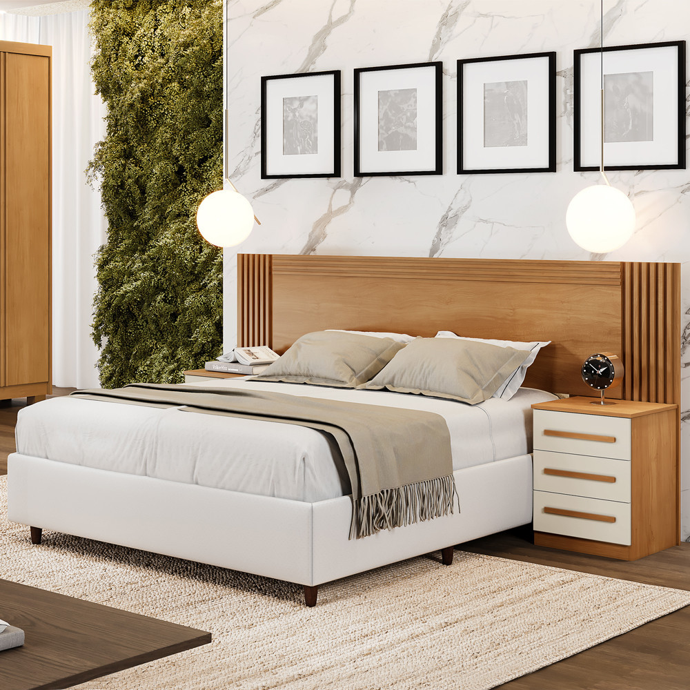 Cabeceira Casal / Queen Benetil Valência Com Mesas De Cabeceira Cinamomo Off White