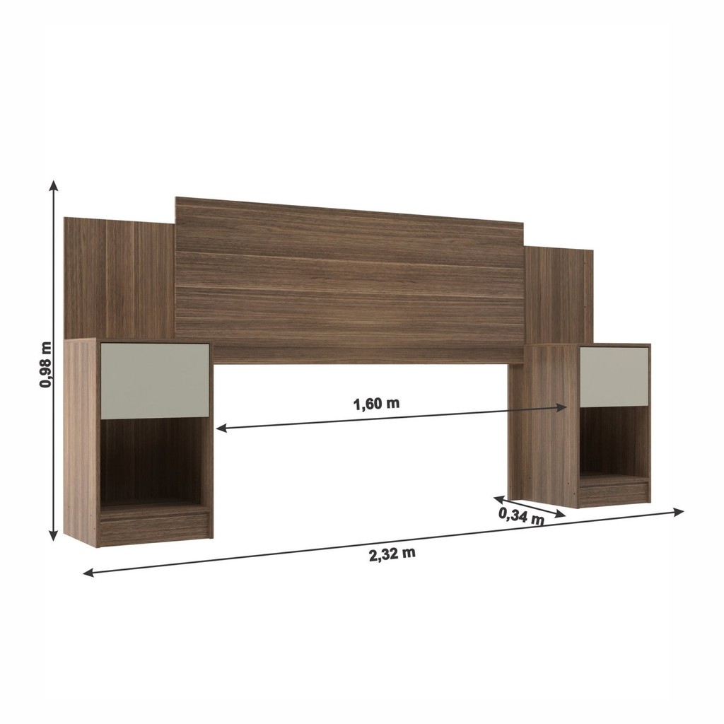 Cabeceira de Casal Sublime 2 Gavetas 2 Nichos Off White/Castanho