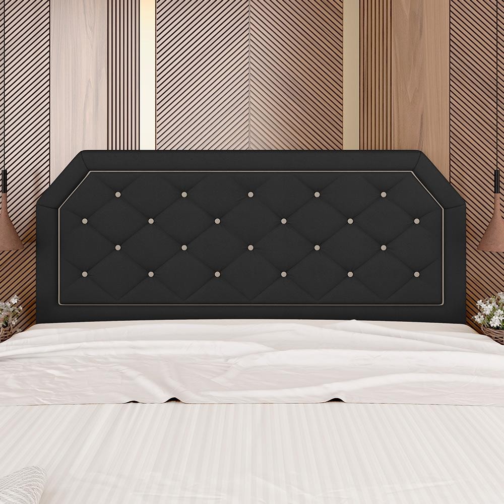 Cabeceira Estofada Queen Florença Suede Preto/bege - Móveis Arapongas