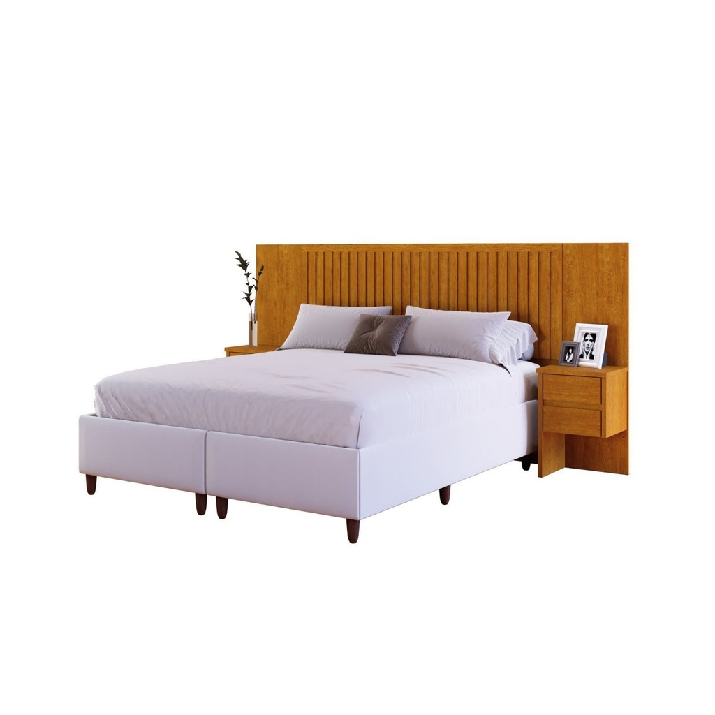 Cabeceira Extensível Florida com Painel Ripado e 2 Mesas de Cabeceira com 2 Gavetas Naturale
