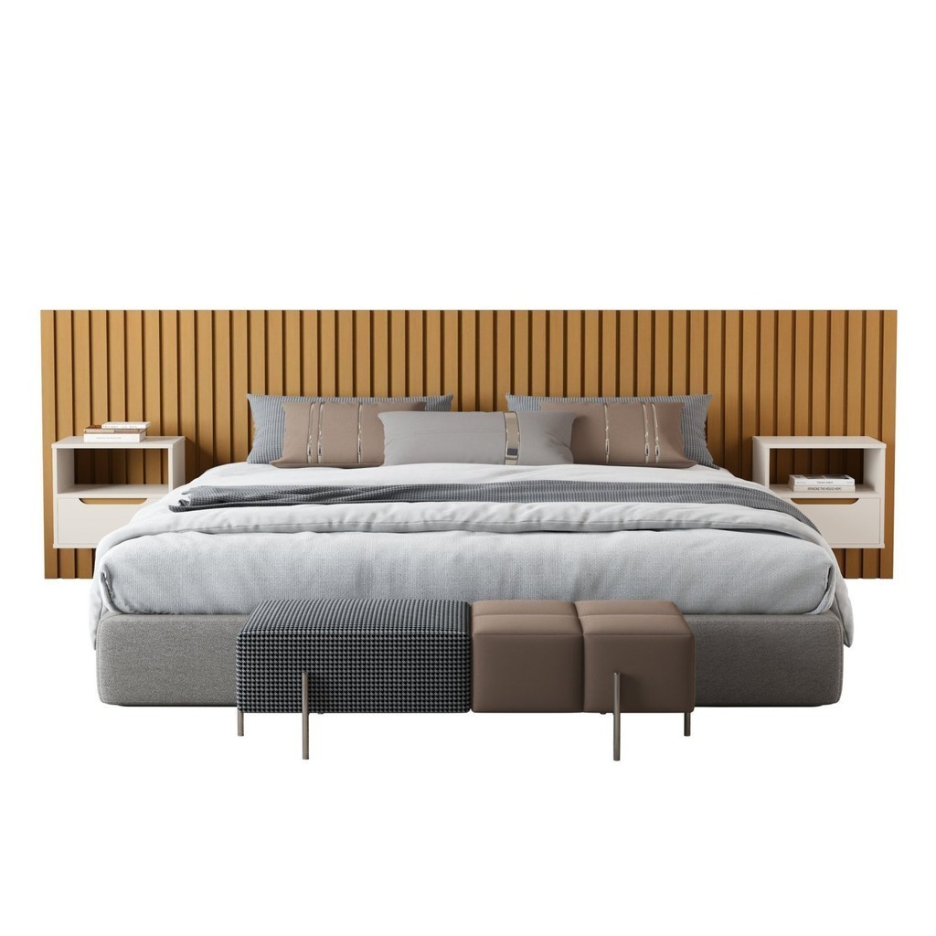 Cabeceira Ripada Maracá King 320cm MDF/MDP com 2 Mesa de Cabeceira Jatobá King