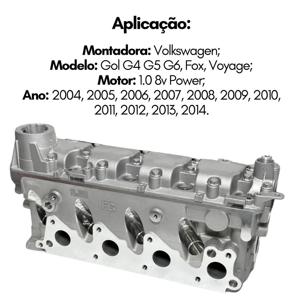 Este Anúncio contém: 01 Cabeçote NOVO: ***NÃO É COMPATÍVEL COM VEÍCULOS QUE POSSUEM RESPIRO ANTICHAMAS NA TAMPA DO CABEÇOTE*** Características: Altura: 136mm. Motor VW EA111 Power 1.0 8v. Aplicação: Montadora: Volkswagen; Modelo: Gol G4 G5 G6, Fox, Voyage; Motor: 1.0 8v Power; Ano: 2004, 2005, 2006, 2007, 2008, 2009, 2010, 2011, 2012, 2013, 2014. Similar: 030.103.063 ET; 030.103.353 CS. Dúvidas frequentes: - O Produto é novo? Sim. Nós trabalhamos apenas com produtos novos, e com garantia. - O Produto é original? Sim. Nós só trabalhamos com distribuidores homologados pelo fabricante. - O produto é igual ao da foto? Sim. Todas as fotos são fieis ao que você receberá. - Em quanto tempo recebo minha compra? É muito simples, basta colocar seu CEP no calculador de frete do anúncio. - Como faço para saber se o produto deste anúncio se aplica ao meu veículo? Na descrição do anúncio você encontra todas as informações das aplicações corretas, se a informação que precisa não está na descrição do anúncio, deixe sua pergunta que nossa equipe de especialistas está preparada para solucionar qualquer dúvida. - Tem alguma dúvida sobre o produto ou sobre a compra? Deixe sua pergunta abaixo, que responderemos prontamente. Atendimento: Nosso horário de atendimento é: 24 horas Temos uma Equipe de Atendimento e Suporte Técnico à disposição. Após a compra, caso tenha alguma dúvida ou algum problema com o seu produto, entre em contato conosco utilizando os canais informados pelas mensagens de pós-venda ou pelo próprio chat de atendimento. * O cumprimento do prazo de entrega é de total responsabilidade da Transportadora e esse prazo é informado no momento da compra podendo ser alterado por condições logísticas. Importante: * Somos Loja Oficial Shopee; * Todos os nossos produtos são checados e bem embalados antes da expedição. * Recomendamos sempre que toda e qualquer instalação seja realizada por profissionais especializados para evitar problemas futuros, pois não somos responsáveis pela má instalação ou mau uso do produto. * Confira se os dados cadastrais estão atualizados, principalmente se o endereço de entrega está correto para evitar que o seu produto retorne e mantenha o número de contato atualizado para que possamos entrar em contato caso necessário. Quem somos: Somos uma empresa, localizada no Rio de Janeiro, com mais de 50 anos de mercado no segmento de atacado e distribuição de Auto Parts em geral. Hoje, a Rhino conta com mais de 10.000 produtos em seu portfólio nos segmentos de refrigeração automotiva, arrefecimento automotivo, suspensão automotiva, mecânica em geral, moto parts e acessórios automotivos. RHINO AUTOPARTS - O Maior E-commerce de Autopeças e Acessórios Automotivos do Brasil.