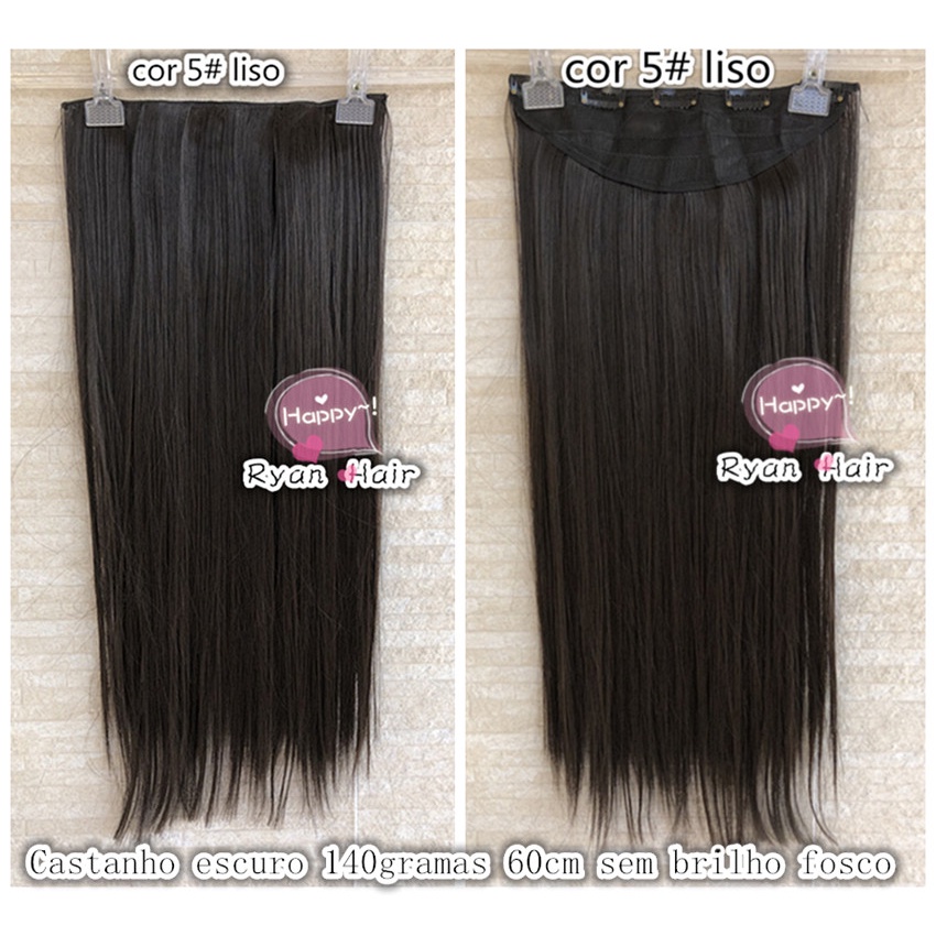 Cabelo aplique tic tac cor 5# castanho escuro liso fosco sem brilho