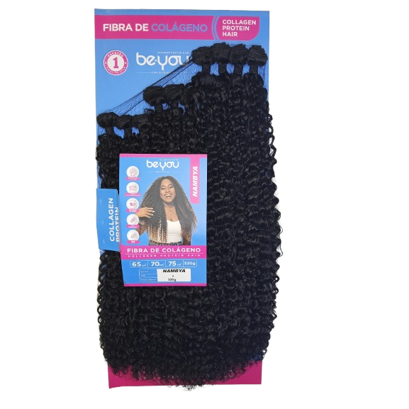 Cabelo Fibra De Colágeno 75cm Na Tela 320g Be.you Nambya Marca: Be.you Modelo: Nambya Tipo de cabelo: Cacheado Comprimento: 65cm com cacho fechado e 75cm esticado (A forma universal para medição de cabelos cacheados e ondulados é com os fios esticados) Método de aplicação: Tela Telas: 10 Telas Material: Fibra de Colágeno Peso Bruto: 320g **Suporta até 150º** O colágeno é uma das proteínas mais importantes produzidas pelo corpo humano. Com base nessa premissa, foi desenvolvida uma tecnologia de fibra extremamente semelhante ao cabelo humano, chamada FIBRA DE COLÁGENO. Essa fibra foi criada em parceria com a empresa americana HAIR PRO TECHNOLOGY e traz a tecnologia COLLAGEN PROTEIN HAIR. A fibra de colágeno possui uma composição enriquecida com mais queratinae colágeno, oferecendo um toque suave, maior durabilidade e resistência a condições adversas como praia, piscina, altas temperaturas e vento. Uma das principais vantagens da Fibra de Colágeno é sua aparência natural, que se assemelha ao cabelo humano. Com brilho discreto e movimento natural, ela proporciona um visual autêntico e sedoso.