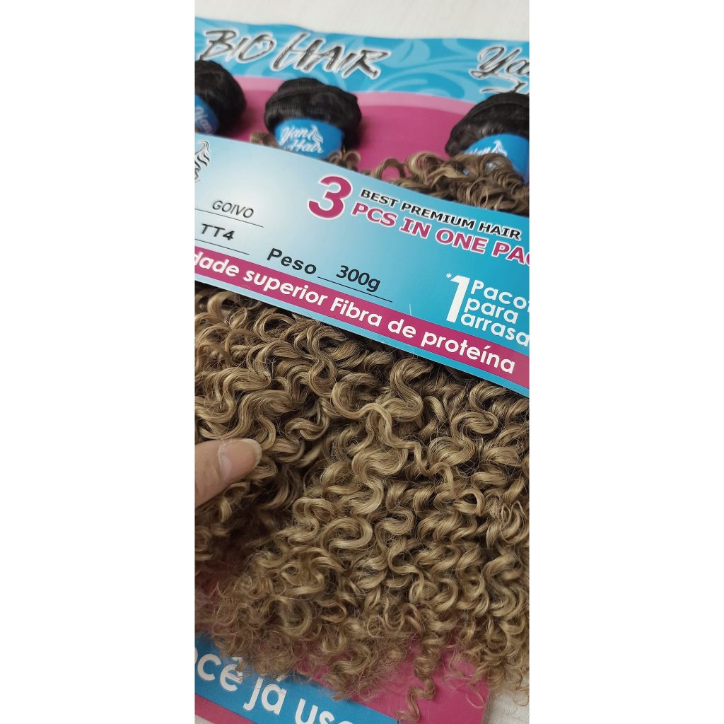 FIBRA DE PROTEÍNA Cabelo Cacheado modelo “Goivo” da linha “Bundles” - YAN HAIR Comprimento: a embalagem contém 3 telas - 60cm; " A MELHOR FIBRA QUE VOCÊ JÁ USOU" Peso: 300g. *1 pacote faz uma cabeça. *caso queira bastante volume 2 pacotes no mínimo. Leve e de toque macio. Resiste a até 180ºC - 200ºC Desenvolvida com fibra de proteína de alta qualidade e tecnologia avançada. Textura natural, semelhante ao cabelo humano Fácil de pentear Lavável