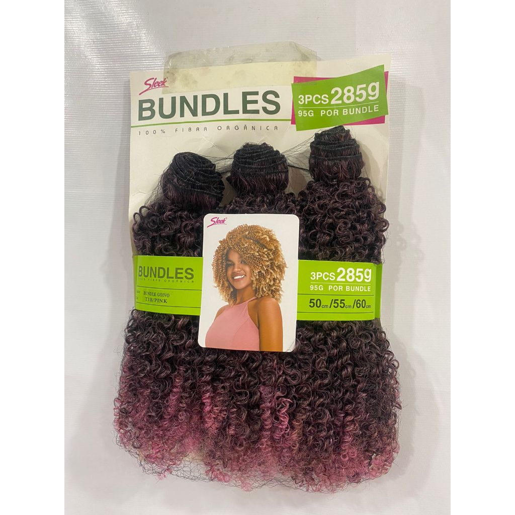 Cabelo Orgânico - Sleek Bundles - Goivo Tipo de fibra: Cabelo Orgânico na Tela; Marca: Sleek Bundles; Rendimento: 1 pacote faz a cabeça e 2 pacotes dão maior volume; Comprimento máximo: 55 centímetros; O que é cabelo orgânico? O cabelo orgânico é uma fibra de alta tecnologia. Foi elaborada em laboratório para ser similar em textura e brilho ao cabelo humano. Quanto tempo dura o cabelo orgânico? O tempo de duração depende dos cuidados com o cabelo. Em média o cabelo orgânico dura de 3 a 6 meses. O cabelo embola? Seguindo os nossos cuidados o cabelo vai permanecer perfeito por muito tempo. Como cuidar do cabelo orgânico? - Você deve lavar o cabelo com água fria ou morna esfregando shampoo somente na raiz e condicionador somente no comprimento do cabelo, evitando nós e o ressecamento do cabelo. - Tire os nós com os dedos ou pente largo. Se preferir passe um pouco de creme para pentear. - Para dormir é recomendado utilizar uma touquinha daquelas que parecem meia calça. Nada de lavar antes de dormir, pois não é saudável dormir com a raiz úmida. - Evite mergulhar na água do mar ou piscina. Posso usar secador, chapinha ou babyliss? Pode usar! A temperatura deve estar abaixo de 180 graus. Teste antes com uma pequena mecha de cabelo. Posso cortar o meu cabelo sintético ou orgânico? Pode! Mas cuidado as pontas tendem a ficar ásperas se não cortado corretamente Cabelos orgânicos e/ou sintéticos aceitam química? Principalmente tintura? Não. Eles não absorvem nenhum tipo de química.