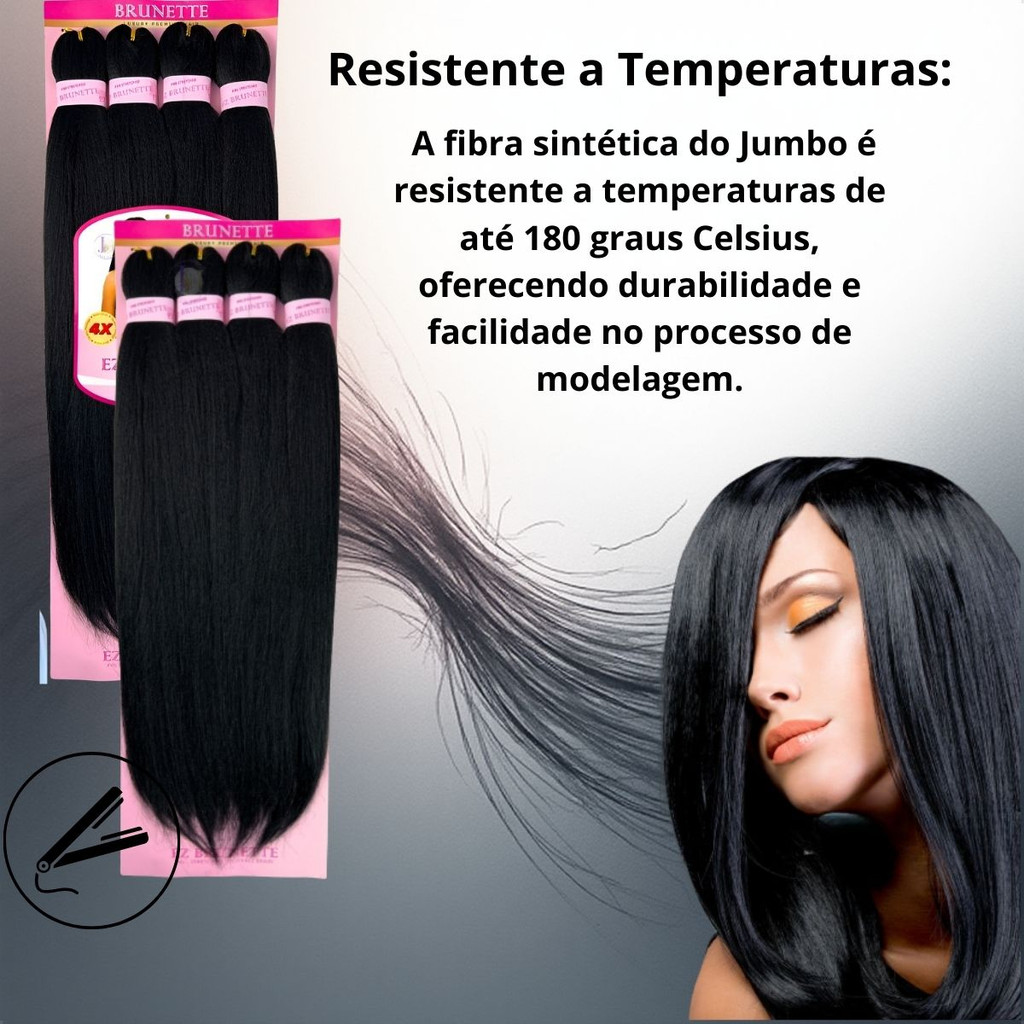 | Cabelo Jumbo Premium Ez Brunette 300g Aceita Até 180°c este produto | R$ 35,90 | 22% | 5.0/5 | 6 |