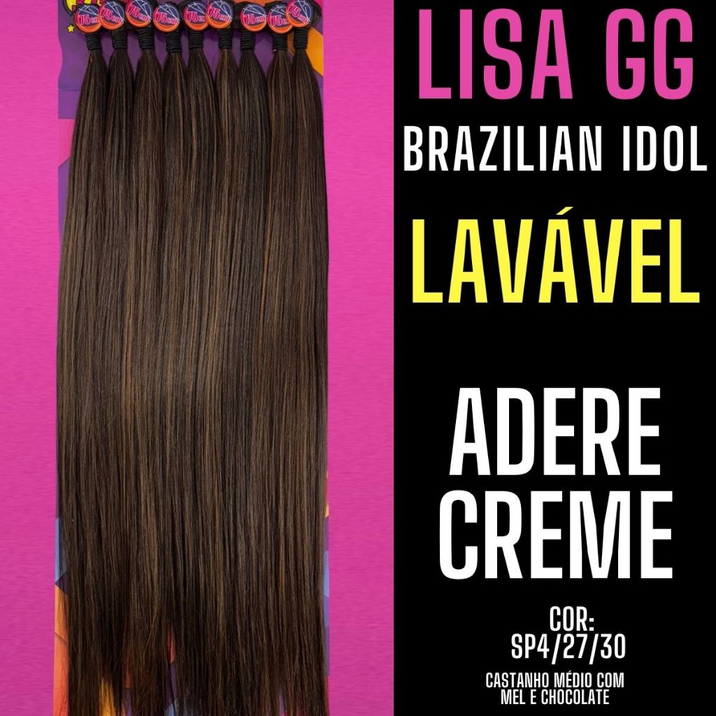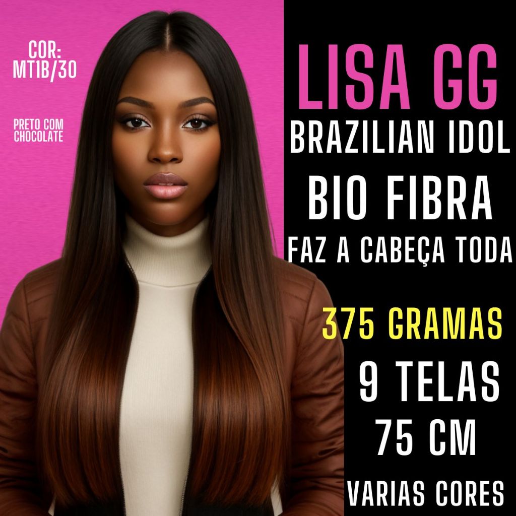 | Cabelo Liso 75cm Bio Fibra Lisa GG Aplique Brazilian Idol - 375g. este produto | R$ 99,99 | 25% | 4.8/5 | — |