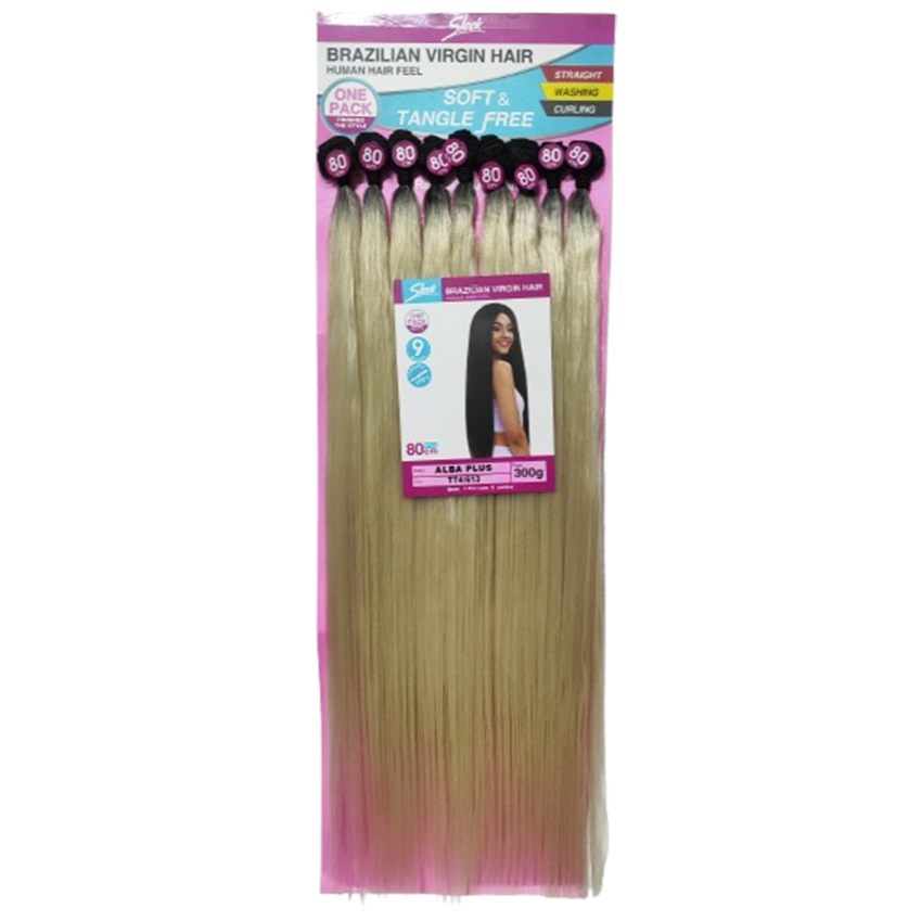 Cabelo Orgânico Sleek Liso - Alba Plus - 80cm - Pacote com 9 telas de 80cm; - Peso: 300g A linha BIO VEGETAL de cabelos da marca Sleek é produzida com uma mistura de FIBRA ORGÂNICA e HUMANA da mais alta tecnologia, são todos importados e possuem aparência, balanço, brilho e textura muito próximos ao cabelo humano. Recomendamos seu uso para todas as pessoas que desejam fazer uma mudança rápida no visual com baixo custo e qualidade muito superior. OBSERVAÇÃO IMPORTANTE: As fibras são resistentes ao calor, portanto você pode utilizar modelador de cachos (baby liss), chapinha ou prancha que aqueça até 180º Celsius (360º Fahrenheit). Porém, saiba que o alisamento ou cachear de qualquer fibra sintética é irreversível e reduz a vida útil de seu cabelo orgânico. Qualquer duvida, estamos a disposição.