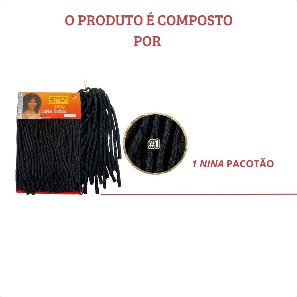 | Cabelo Nina Softex e African Pacotão 360 Gramas Crochet Braid Cor ... este produto | R$ 60,99 | 13% | 4.9/5 | — |
