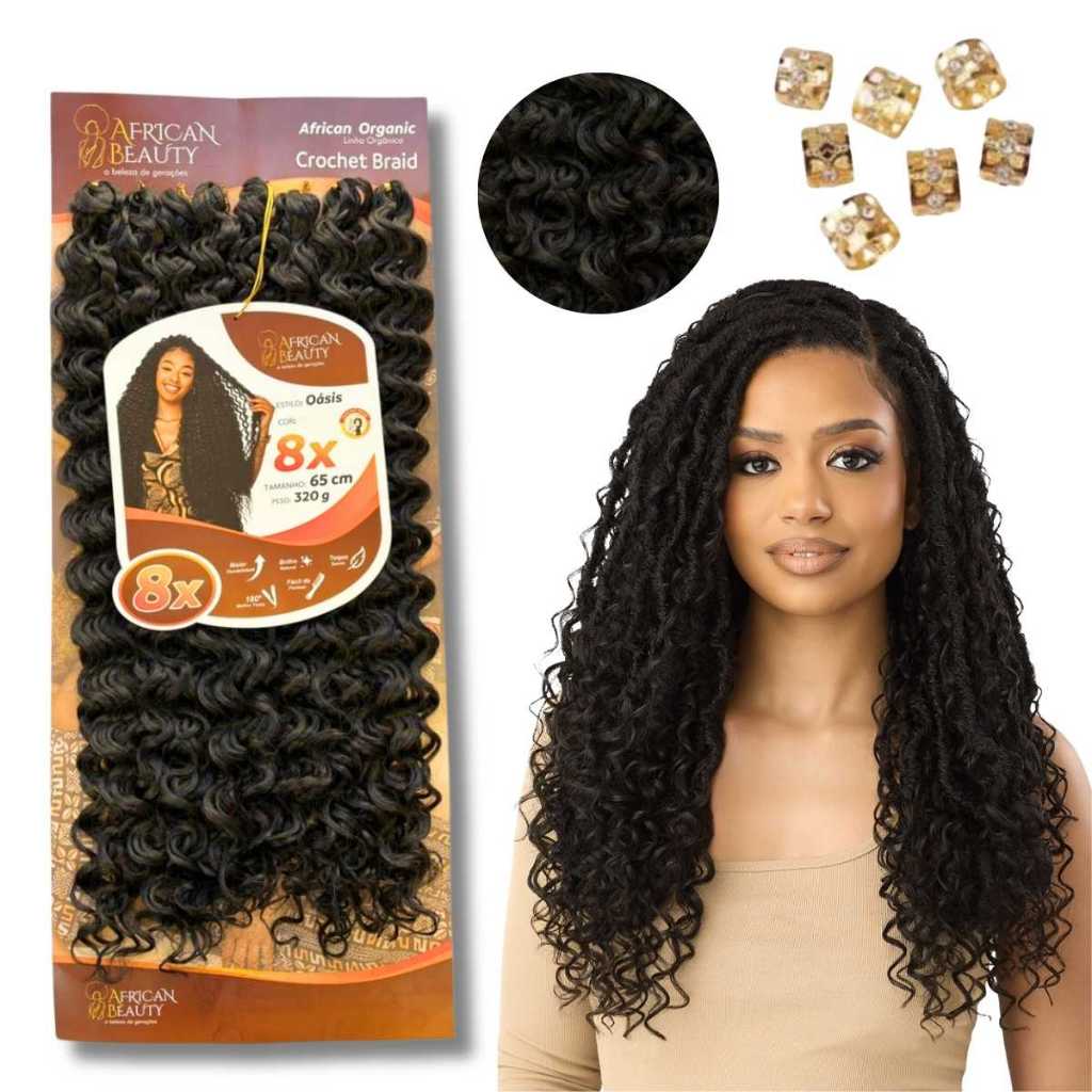 OLÁ SEJA BEM VINDO(A)S! CROCHET OASIS - AFRICAN BEAUTY O Crochet Oasis 65 cm Orgânico Cacheado é ideal para quem busca praticidade, volume e um visual natural. Produzido em fibra orgânica de alta qualidade, ele proporciona um acabamento macio, leve e com balanço natural, além de ser resistente ao calor moderado. Com 65 cm de comprimento e textura cacheada, é perfeito para diversas técnicas de aplicação, garantindo versatilidade para tranças, crochê braids e estilos criativos. Seu caimento natural imita os fios humanos, trazendo elegância e conforto para o dia a dia. Características: Comprimento: 65 cm Peso aproximado: [inserir peso, se tiver] Textura: Cacheada Fibra: Orgânica (alta qualidade) Toque macio, leve e natural Versátil para diferentes penteados e estilos