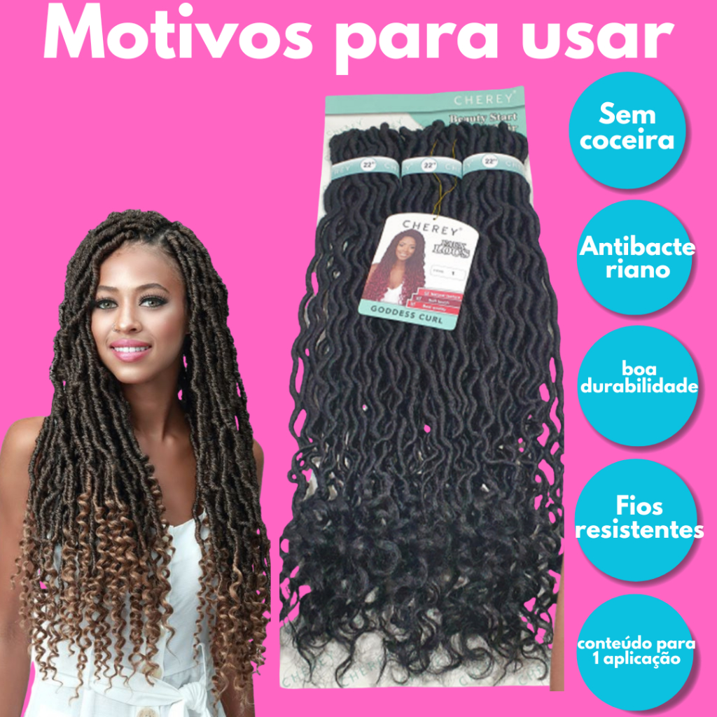 GODDESS CURL Cherey está no mercado há mais de 20 anos, é uma empresa fornecedora de extensões capilares sintéticas, e orgânicas. As fibras da Cherey são cuidadosamente criadas com volume ideal, comprimento, e equilíbrio natural de cores, permitindo que estilistas criativos de todo o mundo obtenham suas visões únicas. A empresa ainda realiza processos ecológicos, permanecendo completamente livres de cores químicas. Características Peso: 260g Comprimento: 55cm Composição: Fibra Sintética Método de colocação: Crochet Braid Manutenção e instruções de uso . Antes de lavar, utilize creme na extensão da fibra . Diluir o shampoo com água (em um borrifador) e passar apenas na raiz (no couro cabeludo) . Enxaguar com água morna e, se necessário, repetir o processo . Sempre utilizar condicionador na fibra (nunca no couro cabeludo) . Deixar secar naturalmente. . Para finalizar, utilizar creme, geleia ou gelatina (para cabelos) da sua preferência . Para dormir recomendamos touca ou fronha de cetim . Quantidade indicada: 1 a 2 pacotes dependendo da quantidade de volume desejado. Perguntas Frequentes 1. Ele brilha? R: Não brilha, é muito semelhante ao cabelo natural 2. Ele embola? R: Por não ser um cabelo humano, ele tende a embolar, são necessários os cuidados para um bom resultado. 3. Posso lavar? R: Sim, pode ser lavado com shampoo e condicionador sem sal dissolvido em água, recomendamos que utilize produtos específicos para cabelos orgânicos (não é regra) é apenas uma dica para aumentar a durabilidade do seu produto. 4. Posso pentear? R: Sim, com creme de pentear e com o cabelo molhado (usar pentes de dentes largos ou os dedos, se o cabelo for cacheado e possuir um cacho muito fechado, não recomendamos pentear para não abrir os cachos e desfiar a fibra. 5. Posso usar chapinha? R: O produto não aceita. 6. Qual a durabilidade? R: 2 a 3 meses, dependendo dos cuidados e adaptação de cada pessoa. 7. É igual cabelo de boneca? R: Não, a fibra é realmente semelhante ao cabelo natural, tanto em sua aparência quanto na textura. 8. Posso já iniciar algum procedimento no cabelo inteiro? R: Antes de qualquer procedimento, recomendamos realizar um teste com uma mecha do cabelo. 9. Solta muitos fios? R: Não, possui costura firme e sustentável. 10. Posso cortar o cabelo? R: Sim, um novo corte poderá oferecer um novo modelo e estilo.
