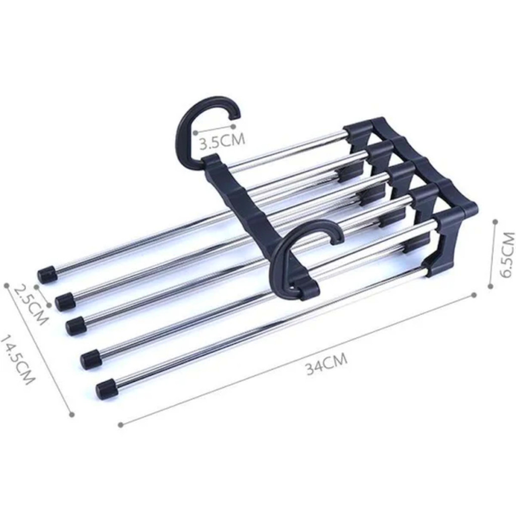 Cabide 5 em 1 Retrátil Multifuncional Organizador Aço Calças Jeans Guarda Roupas