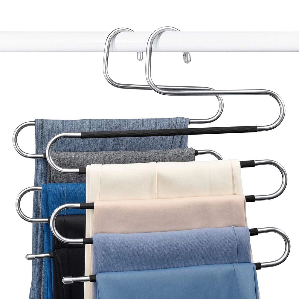 Cabide de metal em S com 5 divisórias p/ calça saia bermuda